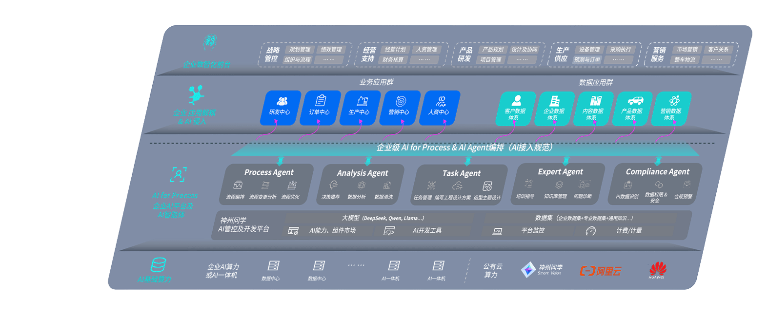 恒星集团问学智车解决方案是一套基于AI技术的汽车行业智能化系统,,,,覆盖从底层算力到顶层AI应用的全栈方案。。。。方案由算力层、、、、模型层和应用层组成:算力层,,,,方案支持多种一体机配置,,具备云端灵活部署、、、多云适配以及动态优化计算资源的能力;模型层,,,恒星集团问学平台版提供了企业级AI应用一站式构建与管理平台,,,,支持基于后训练强化技术的汽车企业专属模型的训练、、、评测和运营;应用层,,,,恒星集团问学DeepSeek版提供包括超级员工、、智能招采、、、、智能营销、、智能客服、、AI for BI等一系列解决方案,,,可助力汽车行业实现数字化转型,,,让管理更智能、、响应更敏捷。。
